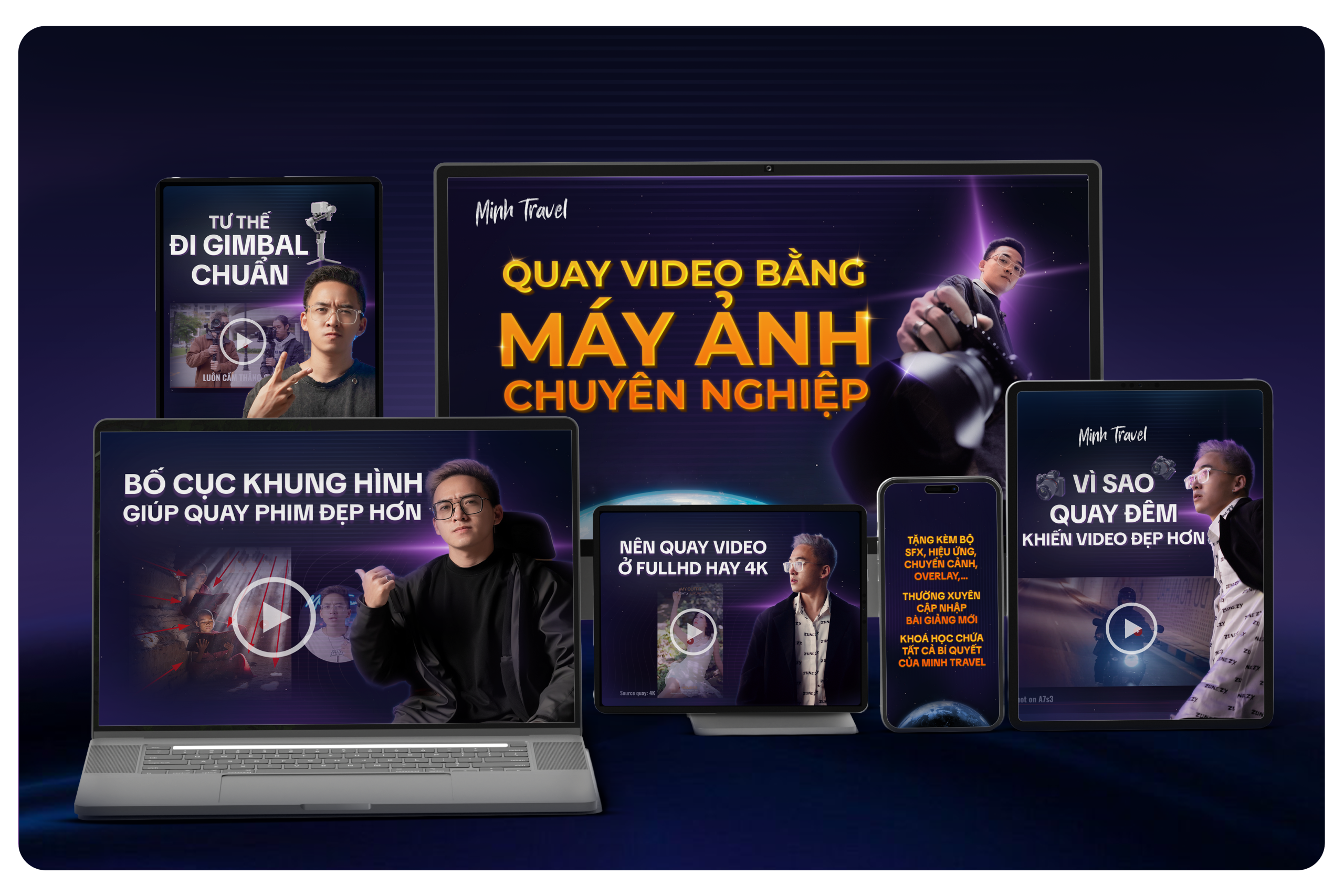 Không chỉ dừng lại ở kỹ thuật, bạn sẽ được hướng dẫn một quy trình sáng tạo bài bản – từ ý tưởng, kịch bản hình ảnh, setup, ghi hình đến hậu kỳ. Mỗi bước đều được tinh chỉnh để giúp bạn tiết kiệm thời gian, tối ưu chất lượng và tạo ra sản phẩm mang đậm dấu ấn cá nhân. Đây là công thức giúp bạn không làm video một cách “cảm tính”, mà có chiến lược rõ ràng, chuyên nghiệp ngay từ đầu.